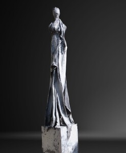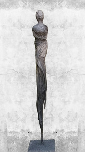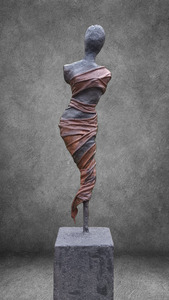 2024Sculpture in clay, finished with textile and paverpol. The wrapping in textile symbolizes the limitation of negative thoughts. Thoughts that can keep us captive in a non-realistic way. The strength in the attitude of the female figure shows the inner strength. We are often so much stronger than we make ourselves think we are...