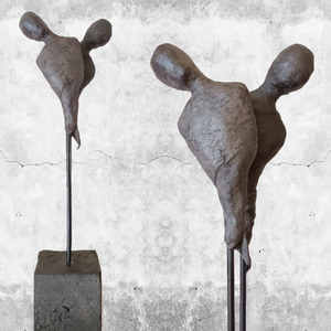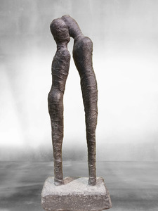 2022Being attracted to someone and wanting to be with that person...feeling the connection. Sculpture made of clay, paverpol (lead color) and artstone. The base is made from concrete, finished with paverpol and artstone.